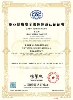 公司于2023年6月已通过了ISO45001体系认证并取得相关证书;于2011年已通过了江西省安监局认定的三级安全标准化企业的验收并之后通过多次复审,于2023年6月已通过二级安全标准化企业的认证审查。