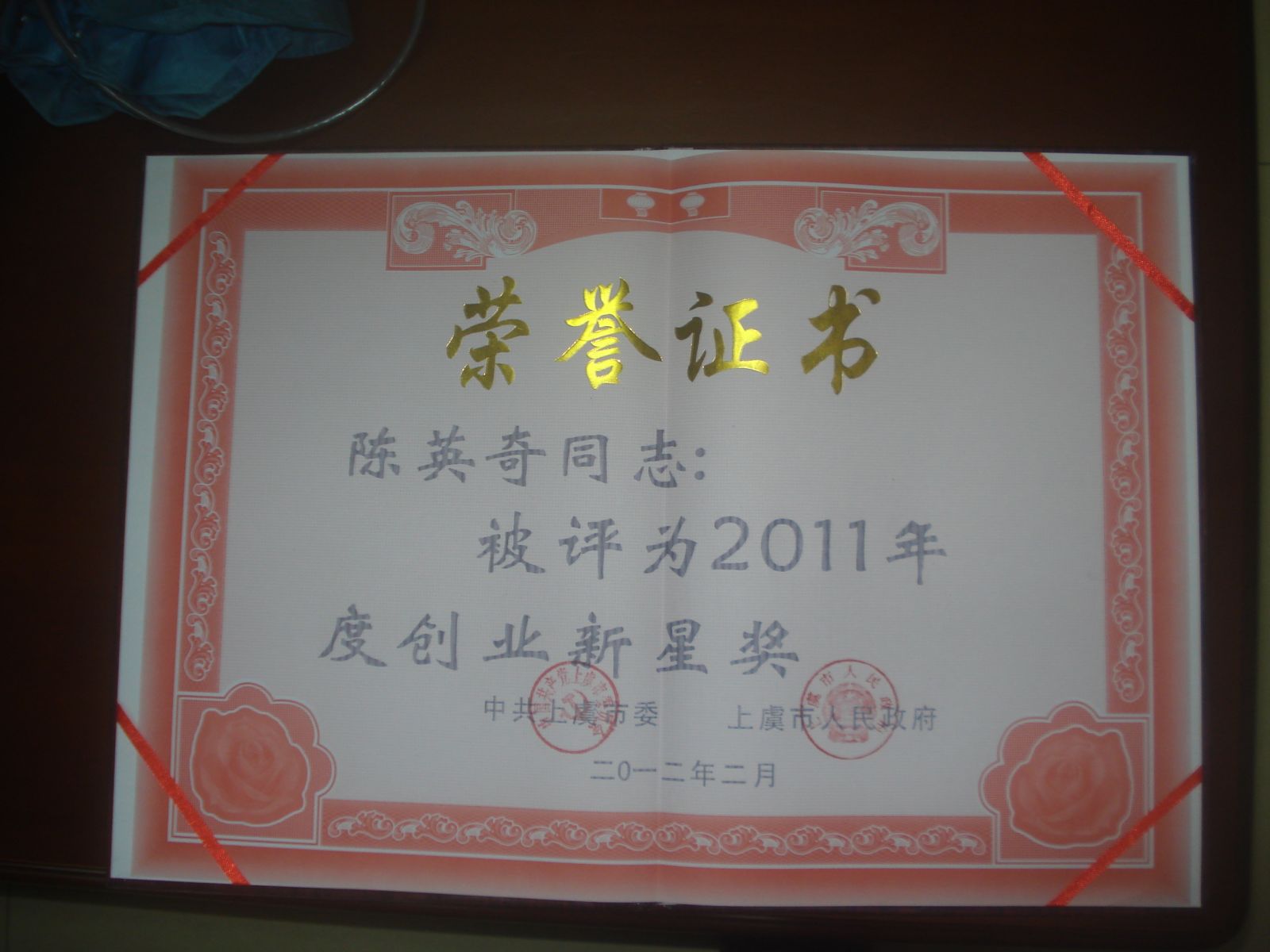 董事长陈英奇荣获“创业新星奖”